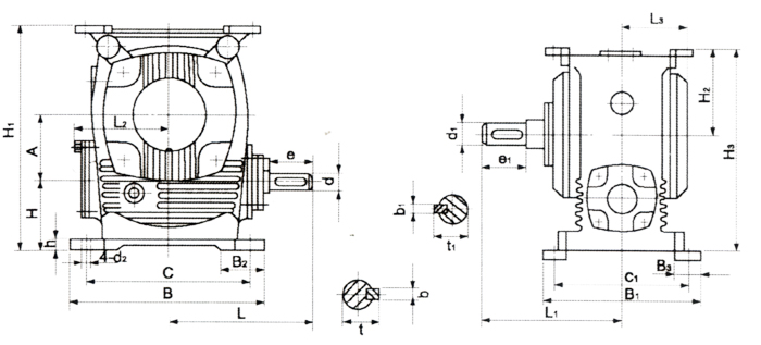 WHT一蜗杆可以在蜗轮之下、之上、之侧的通用型圆弧齿圆柱蜗杆减速器;